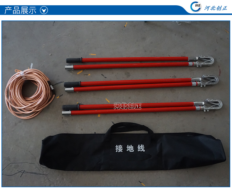 4)接地軟銅線有分相式和合相式,接地棒有圓口式和雙簧式。