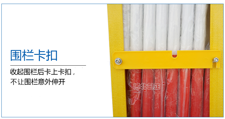 3、產品特點:紅白相間有警示作用;配有底輪,搬運方便。